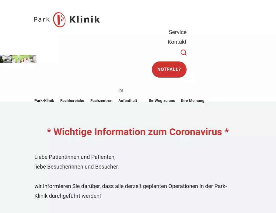 • Klinikeigene Parkplätze für Besucher und Besucherinnen sowie Patienten und Patientinnen