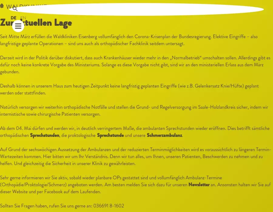 Orthopädie mit Lehrstuhl der Friedrich-Schiller-Universität Jena