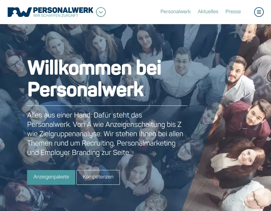 Personalwerk kümmert sich um alle Themen rund um Employer Branding, Personalmarketing und E-Recruiting. Dabei stehen Ihnen unsere Eignungbereiche zur Seite, die sich für alle Personalbelange eigens spezialisiert haben.Personalwerk kümmert sich um alle Themen rund um Employer Branding, Personalmarketing und E-Recruiting. Dabei stehen Ihnen unsere Eignungbereiche zur Seite, die sich für alle Personalbelange eigens spezialisiert haben.
