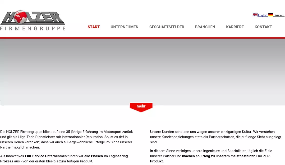 Die HOLZER Firmengruppe blickt auf eine 35 jährige Erfahrung im Motorsport zurück und gilt als High-Tech Dienstleister mit internationaler Reputation. So ist es tief in unseren Genen verankert, dass wir auch außergewöhnliche Erfolge im Sinne unserer Partner möglich machen.
