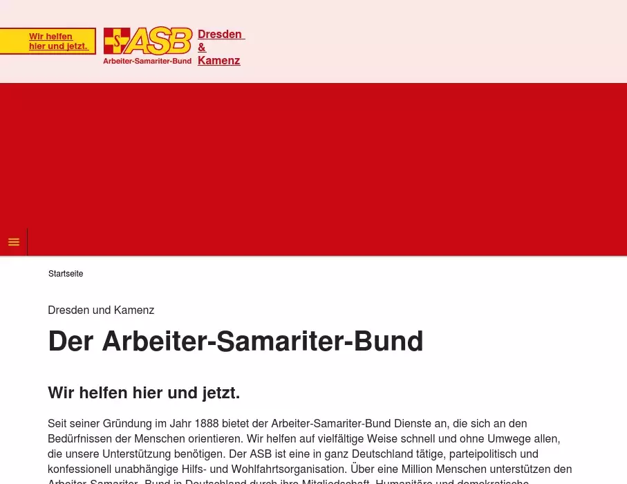 Der ASB Dresden und Kamenz stellt sich vor. Wir helfen schnell und ohne Umwege allen Menschen, die unsere Unterstützung benötigen. Unabhängig von ihrer politischen, ethnischen, nationalen und religiösen Zugehörigkeit. Mit unserer Hilfe ermöglichen wir den Menschen, ein größtmögliches Maß ihrer Selbstständigkeit zu entfalten und zu wahren.Dresden & Kamenz