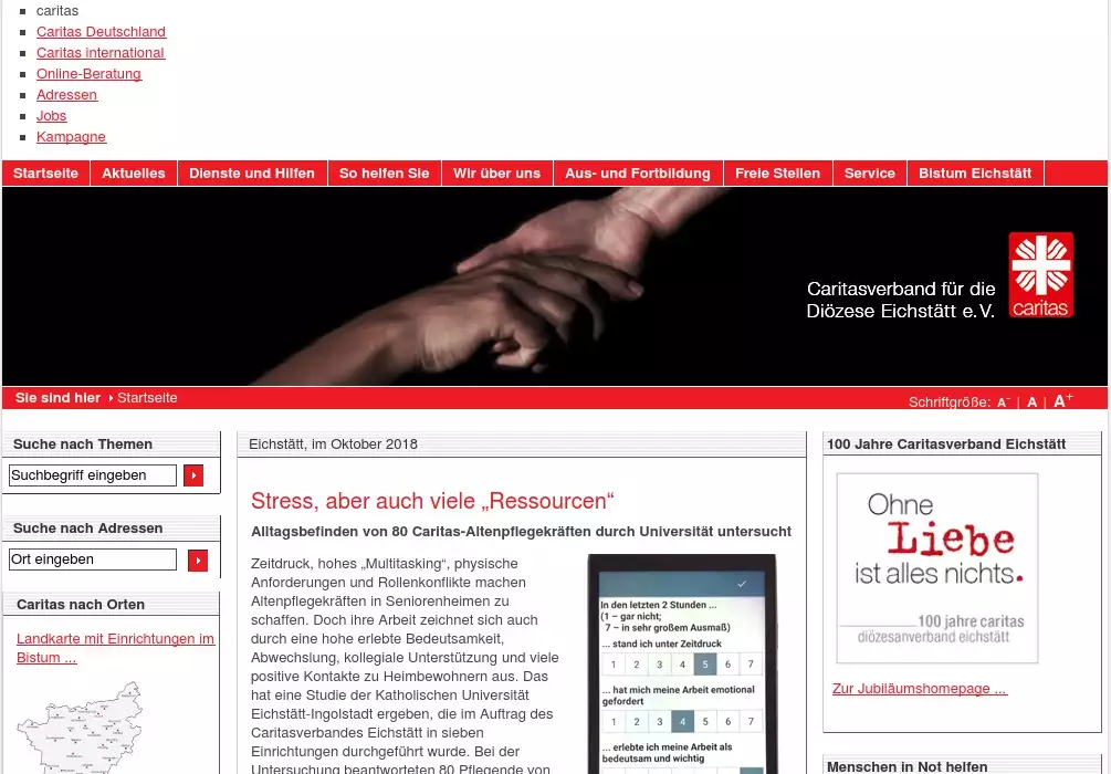 Aktuelle Meldungen über die soziale Arbeit im Bistum Eichstätt und Informationen über die Einrichtungen und DiensteSuche nach Adressen Caritas nach Orten Landkarte mit Einrichtungen im Bistum ...