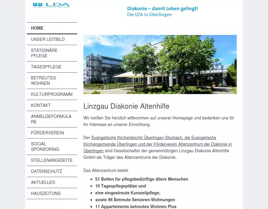 Linzgau-Diakonie-Altenhilfe GmbH, ÜberlingenAngebot, Eignung, BeratungWir heißen Sie herzlich willkommen auf unserer Homepage und bedanken uns für Ihr Interesse an unserer Einrichtung.