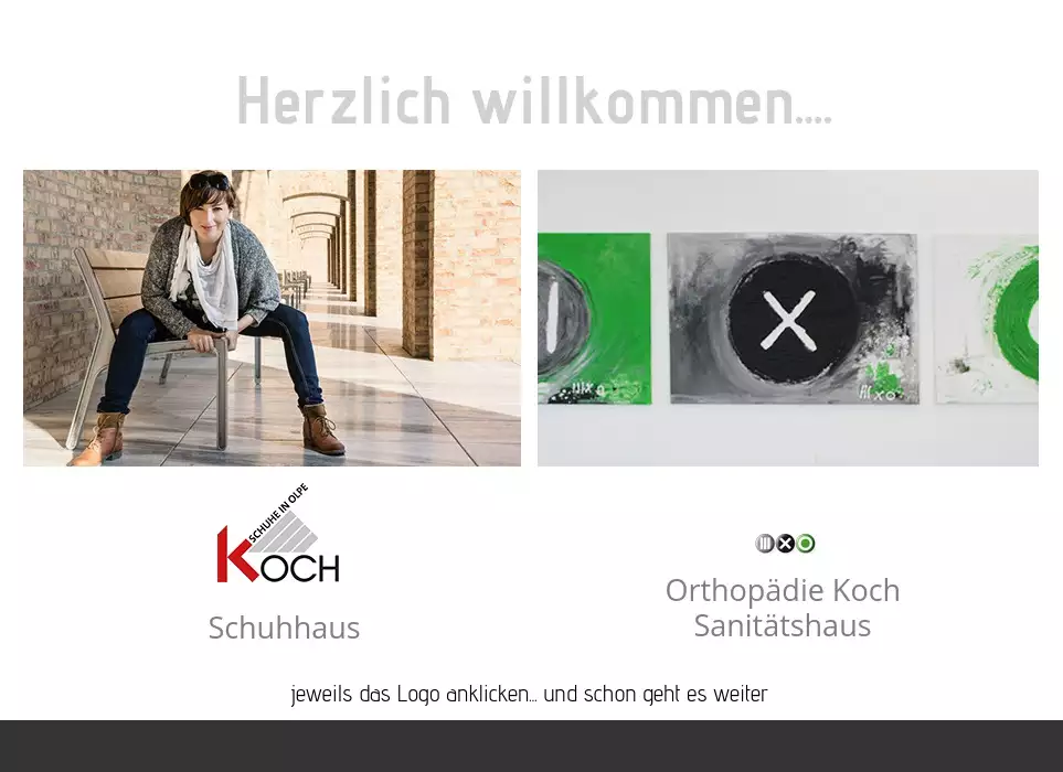 Schuhhaus Koch, Sanitätshaus Koch, Orthopädie Koch, Lederwaren Koch, Olpe, Drolshagen, Wenden, AttendornSchuhe, Santitätshaus, Orthopädieschuhmacher, Orthopädietechnik, Reisegepäck, Koffer, Taschen, Schuhe,Herzlich willkommen....