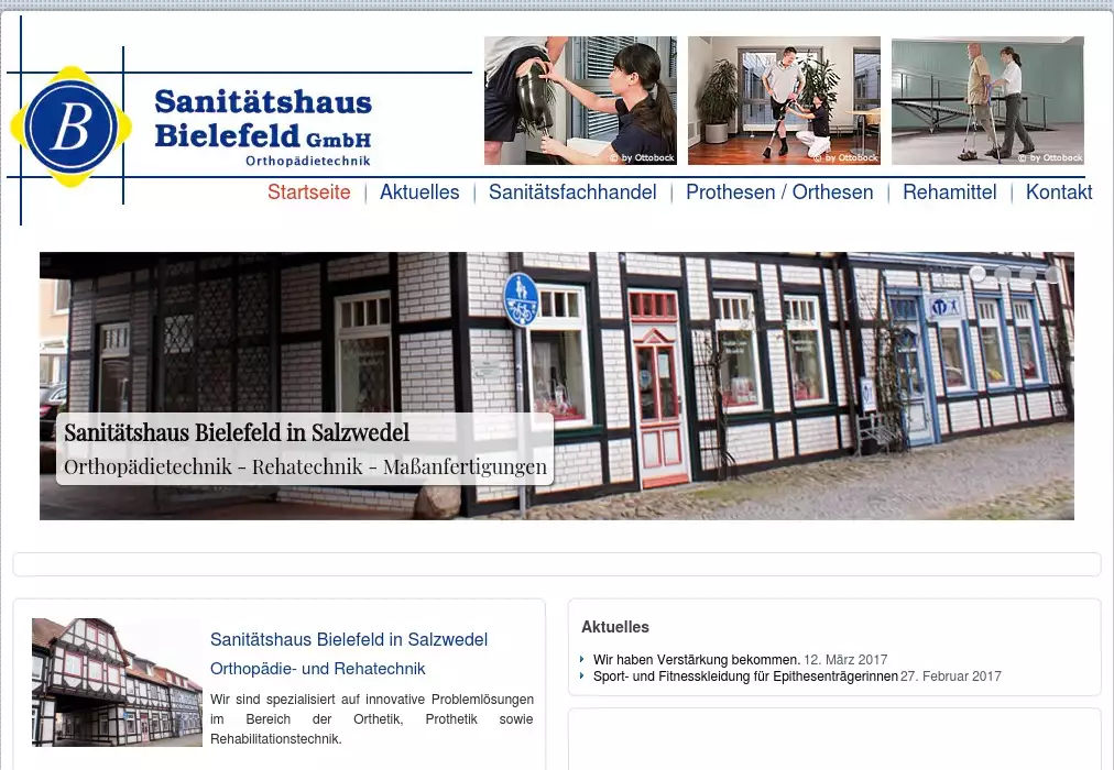 Sanitätshaus Bielefeld in SalzwedelOrthopädie- und RehatechnikWir sind spezialisiert auf innovative Problemlösungen im Bereich der Orthetik, Prothetik sowie Rehabilitationstechnik.