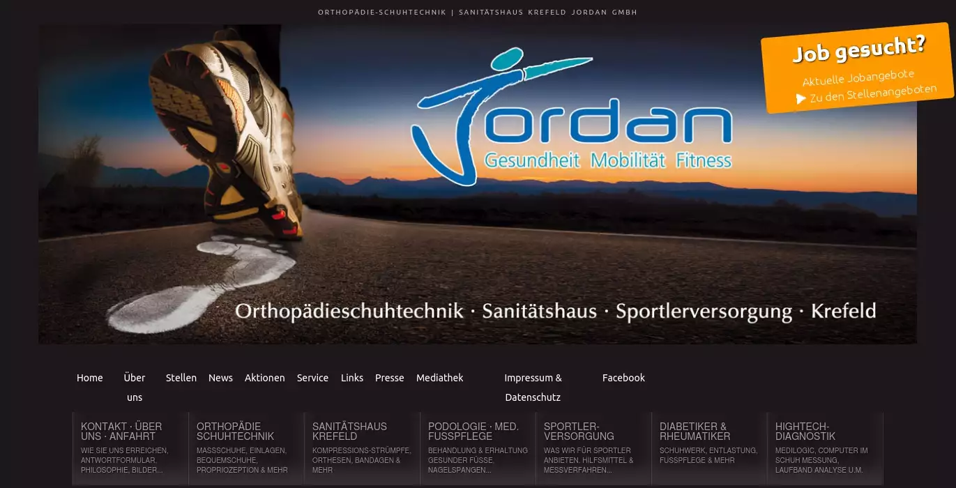 Orthopädie Schuhtechnik Sanitätshaus Wilhelm Jordan [D-47799 Krefeld] orthopädie, schuhtechnik, sanitätshaus, jordan, sportlerversorgung, diabetiker, diagnostik, bandagen, almedicoVom 23. Dezember 2017 - 6. Januar 2018 bleibt die Orthopädie Schuhtechnik Jordan geschlossen.Ab Montag den 8. Januar 2018 sind wir wieder wie gewohnt für Sie da!
